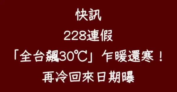 快訊/228連假「全台飆30℃」 乍暖還寒!再冷回來日期曝