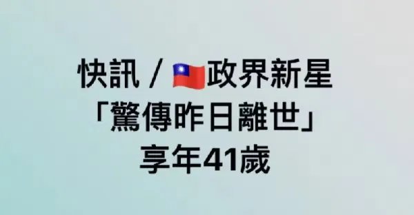 快訊/政界新星「驚傳昨日離世」享年41歲