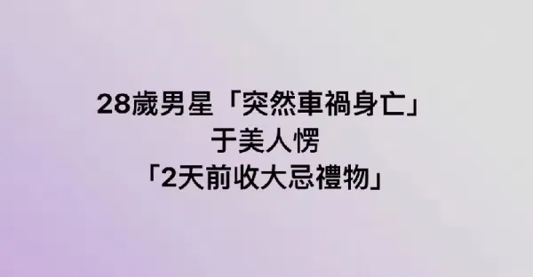 28歲男星「突然車禍身 亡」...于美人愣「2天前收大忌禮物」