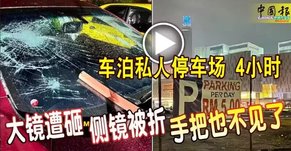 車泊私人停車場 4小 時 大鏡遭砸 側鏡被折 手把也不見了