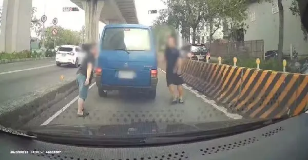 廂型車下74匝道插隊 遇皮卡車不讓 竟揮拳 目擊民眾:這報應來得比愛情還快