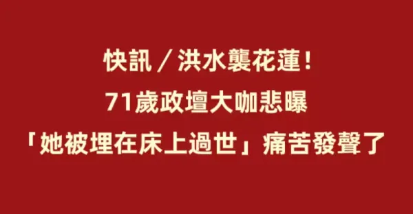 快訊/洪水襲花蓮!71歲政壇大咖悲曝「她被埋在床上過世」痛苦發聲了~
