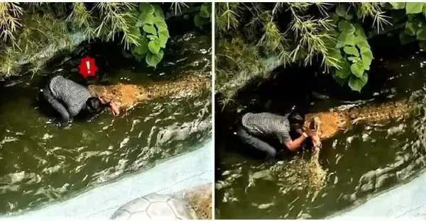 天兵阿北下水「找鱷魚玩自拍」!!秒遭鱷吻「水中掙扎」家人驚叫:以為塑膠的啊!