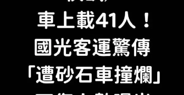 快訊/車上載41人!國光客運驚傳「遭砂石車撞爛」 死傷人數曝光