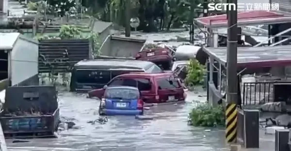 花蓮光復大淹水! 商品全被衝出來,住戶爬屋頂避難,老人神情恍惚、孩子嚇哭