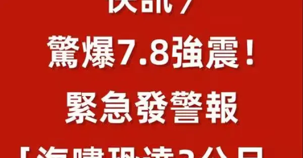 快訊/驚爆7.8強震!緊急發警報「海嘯恐達3米!」
