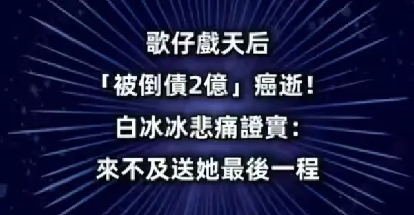 突發/歌仔戲天后「被倒債2億」癌逝!白冰冰悲痛證實:來不及送她最後一程~