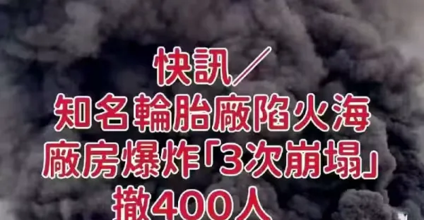 快訊/知名輪胎廠陷火海!廠房爆炸「3次崩塌」撤400人 !毒氣狂飄燒數日
