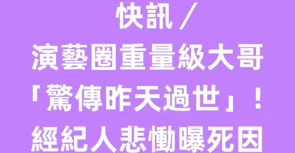 快訊/演藝圈重量級大哥「驚傳昨天過世」!經紀人悲慟曝死因.