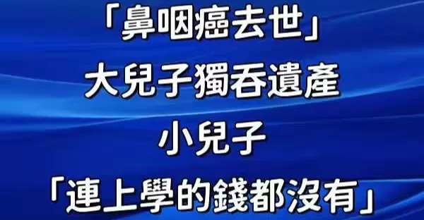 資深男星「鼻咽癌去世」!大兒子獨吞遺產 小兒子「連上學的錢都沒有」:造化弄人