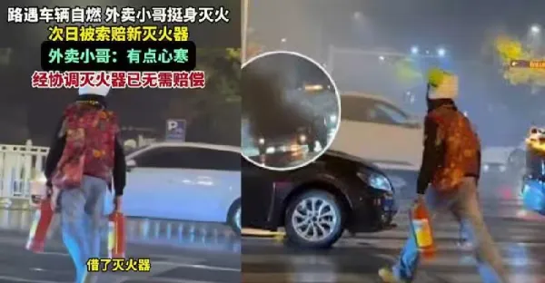 車輛自燃外送小哥「挺身救火」!次日被索賠新滅火器...讓他寒心,警方已回應