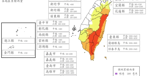快訊/楊柳颱風5縣市明天風雨達停班課標準 24小時降雨上看450毫米!