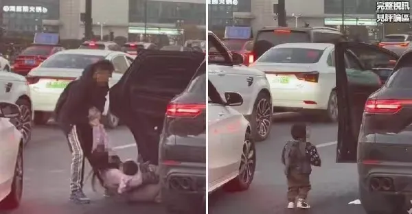 當街大暴走!!夫強拖妻兒「丟包快車道」,人妻爬回駕駛座獨留幼童哭嚎,驚悚10秒畫面曝光:路人都怒了