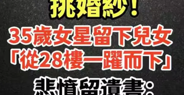 丈夫和小三挑婚紗!35歲女星留下兒女「從28樓一躍而下」 悲憤留遺書: 「我一滴眼淚都流不出」