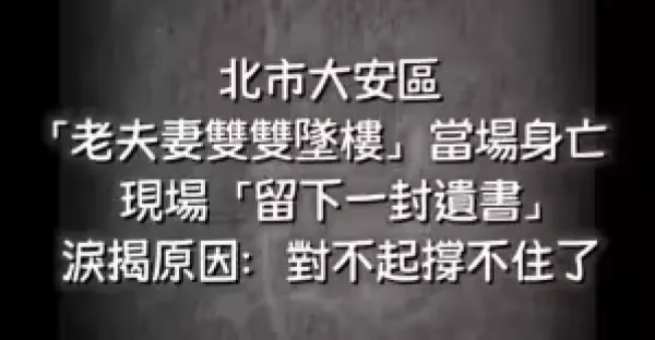 快訊/北市大安區「老夫妻雙雙墜樓」當場身亡, 現場「留下一封遺書...」 淚揭原因:對不起撐不住了