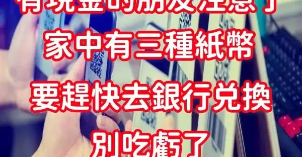 有現金的朋友注意了,家中有三種紙幣,要趕快去銀行兌換,別吃虧了~
