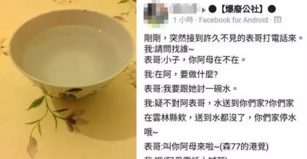 雲林表哥突然打來說「想討一碗水」媽媽瞬間臉色凝重... 他好奇上網發問「背後意義」網友:請節哀