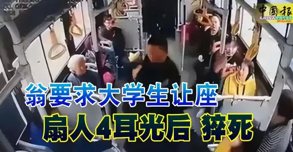 翁要求大學生讓座 扇人4耳光後 猝死
