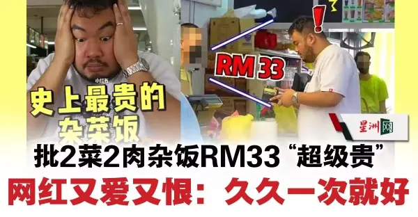 批2菜2肉雜飯33令吉「超級貴」 網紅又愛又恨:久久一次就好