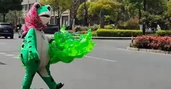 2小時衣服全濕!女孩下班後兼職扮青蛙人賣氣球,一晚收入……