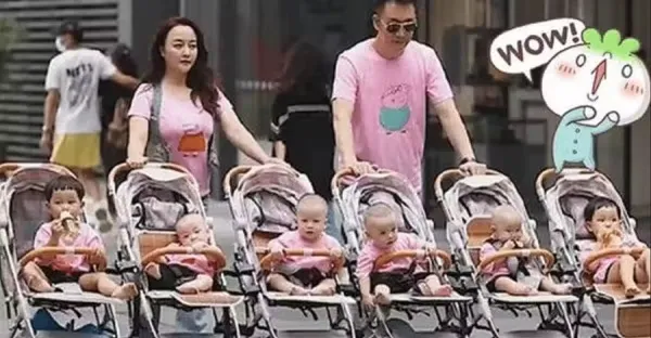 一胎雙胞胎女兒,二胎喜得四胞胎男娃,霸氣夫妻一家橫行出街「6輛嬰兒車並行」路人回頭率百分百