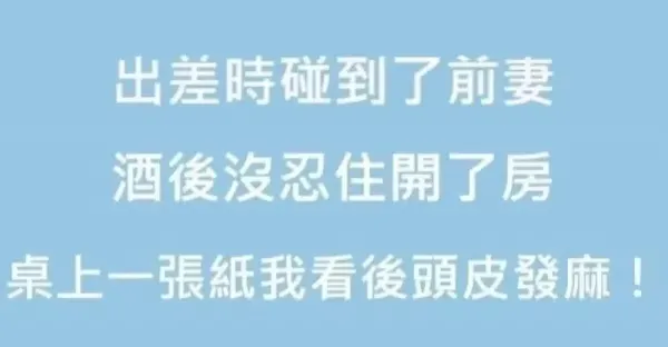 出差時碰到了前妻,酒後沒忍住就開了房,隔天桌上有一張紙,我看了以後頭皮發麻!