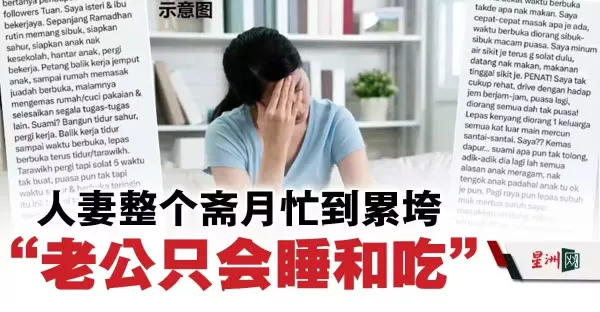 人妻整個齋月忙到累垮 「老公只會睡和吃」