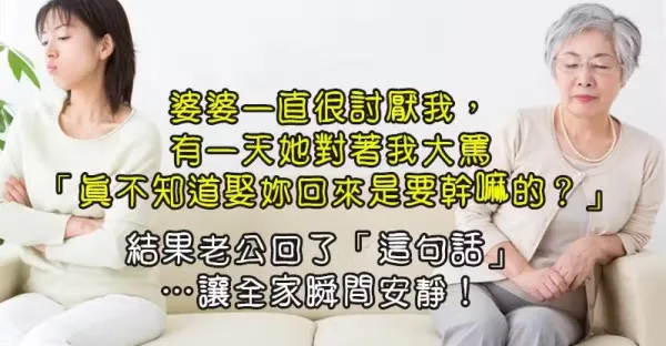 婆婆一直很討厭我,有一天她對著我大罵「真不知道娶妳回來是要幹嘛的?」結果老公回了「這句話」…讓全家瞬間安靜!