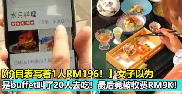 【價目表寫著1人RM196!】女子以為是buffet叫了20人去吃!最後竟被收費RM9K!