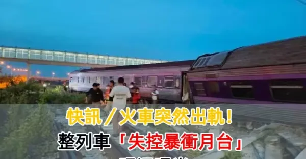 快訊/火車突然出軌!!!整列車「失控暴沖月台」現況曝光