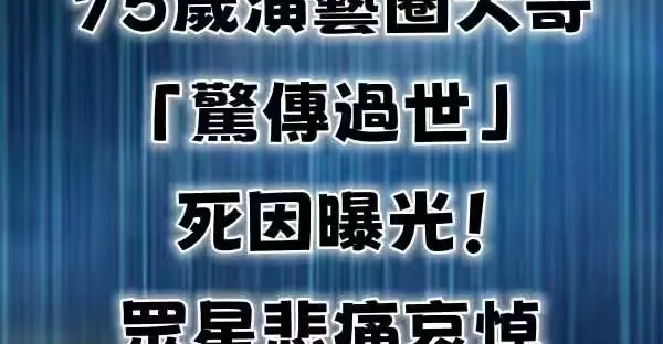 快訊/75歲演藝圈大哥「驚傳過世」死因曝光!眾星悲痛哀悼!