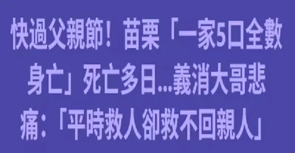苗栗驚傳「一家五口車.內.斷.氣」身.亡多日