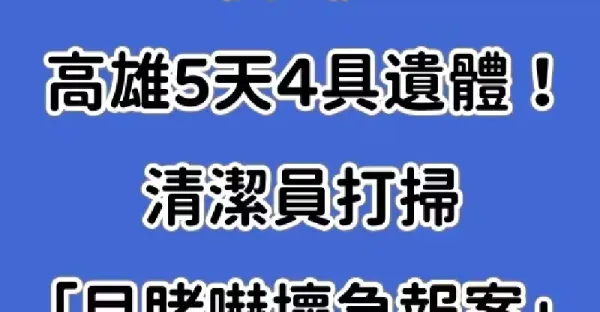 快訊/高雄5天4具遺體 清潔員打掃「目睹嚇壞急報案」