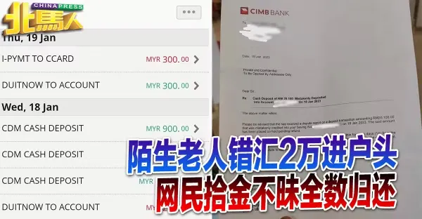 陌生老人錯匯2萬進戶頭 網民拾金不昧全數歸還
