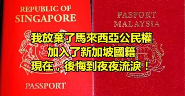 一個曾經是馬來西亞公民的「肺腑之言」 成為新加坡國籍!後悔莫及