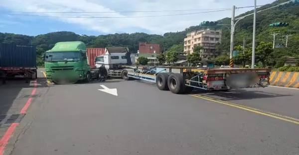 基隆港西岸貨櫃車嚴重對撞 「車頭凹爛」女駕駛受困
