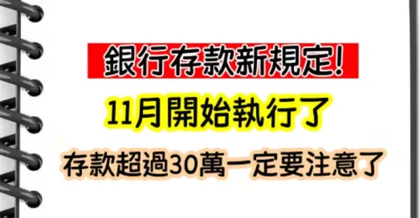 銀行存款新規定!11月開始執行了,存款超過30萬一定要注意了~