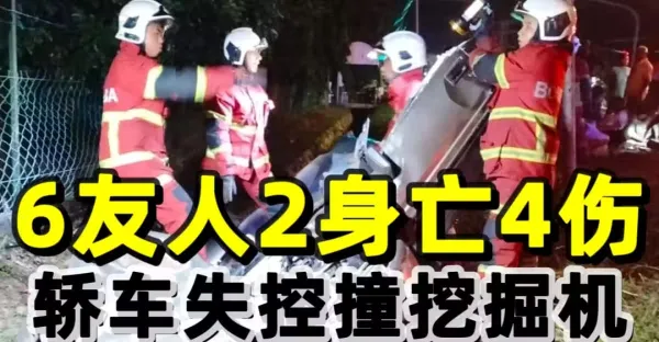 轎車失控撞挖掘機 6友人2死4傷