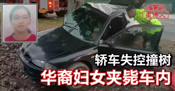 轎車失控撞樹 華裔婦女夾斃車內