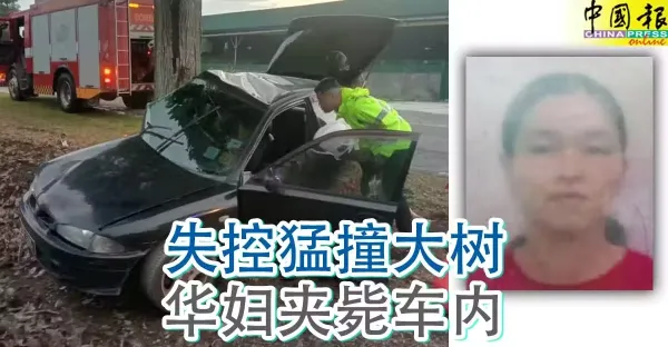 失控猛撞大樹 華婦夾斃車內