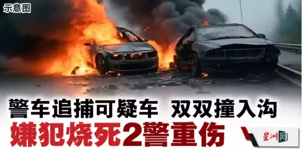 警車追捕可疑車雙雙撞入溝 嫌犯燒死 2警重傷