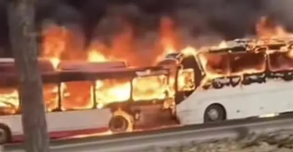 快訊/重大死亡交通事故!遊覽車追撞「燒成火球」只剩骨架 目擊者嚇壞「死傷曝光」