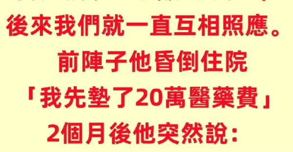 我離婚後一個人租房住,偶然發現60歲房東獨居,後來我們就一直互相照應。 前陣子他昏倒住院「我先墊了20萬醫藥費」,2個月後他突然說:「我家你可以免費住到老!」 #接著他兒子出現了