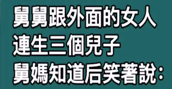 舅舅跟外面的女人連生三個兒子,舅媽知道後笑著說:你開心就好!舅舅直到臨終前, 舅媽說出了真相