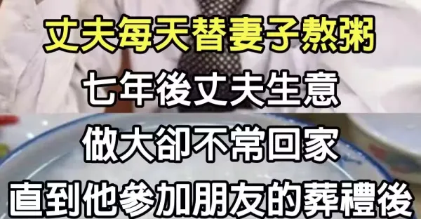 新婚時丈夫每天替妻子熬粥 ,七年後丈夫生意做大卻不常回家,直到他參加朋友的葬禮後,才驚覺妻子…