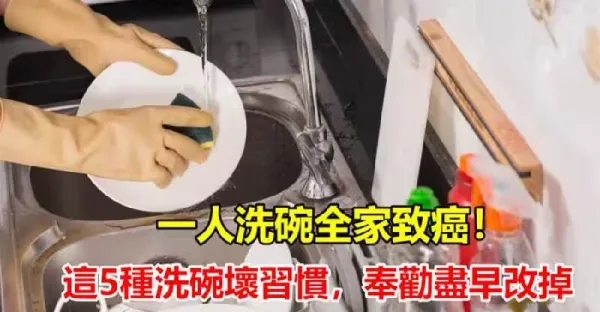 一人洗碗全家致癌!這5種洗碗壞習慣,奉勸儘早改掉!
