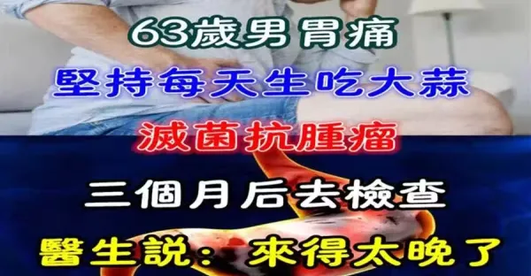 63歲男胃痛!堅持每天「生吃大蒜」滅菌抗腫瘤,三個月後去檢查醫生說:來得太晚了…