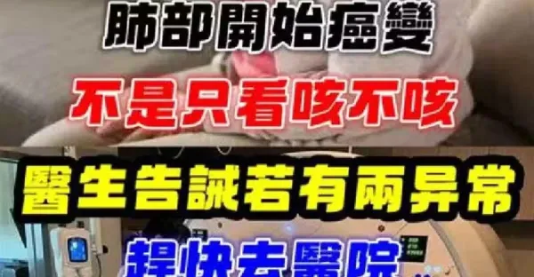 肺部開始癌變!不是只看「咳不咳」而已,醫生告誡「若有二異常」: 趕快去醫院