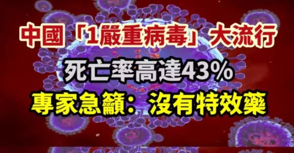 中國「1嚴重病毒」大流行!死亡率高達43% 專家急吁:沒有特效藥,去中國旅遊的千萬要當心
