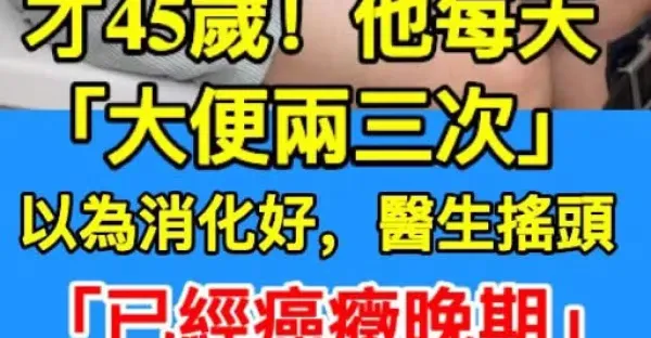 才45歲❗他每天「大便兩三次」以為消化好,醫生搖頭「已經癌症晚期」4異常沒注意…